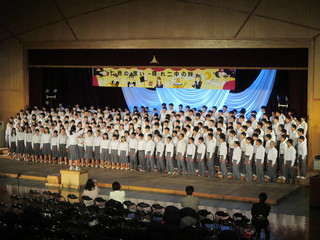 英語スピーチ、生活体験文の発表、各学年合唱や学級合唱が演奏されました。
